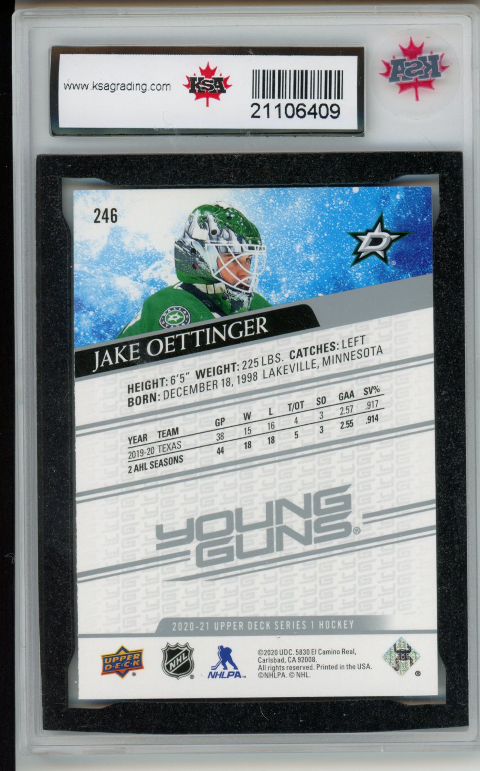 2020-21 Upper Deck Jake Oettinger #246 Young Guns KSA 9.5 NGM